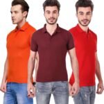 Men’s Polo Neck Short Sleeve Casual Tshirt Combo of Red, Maroon, Orange colors (Pack of 3)