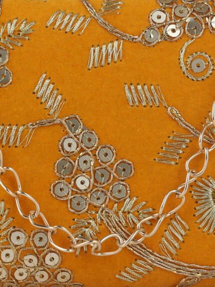 Mustard Embroidered Box Clutch For Girls and womens