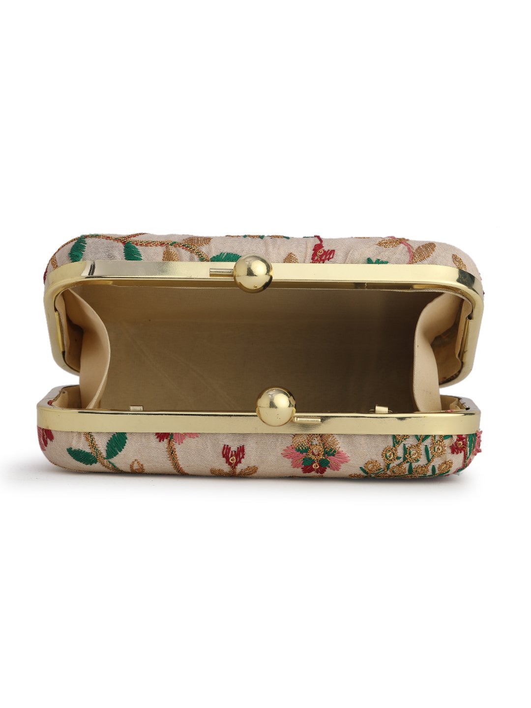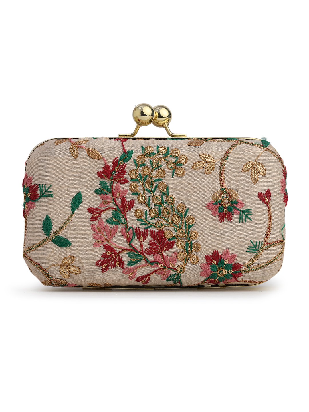 Combo Of Boho Bag And Off White & Gold Embroidered Box Clutches For Girls and womens(Multicolor)