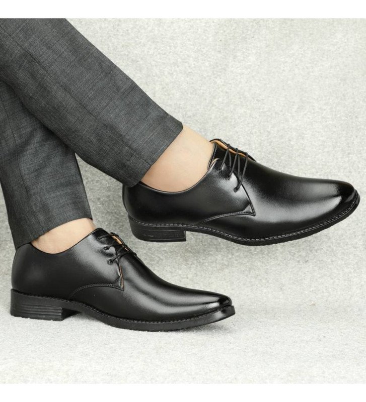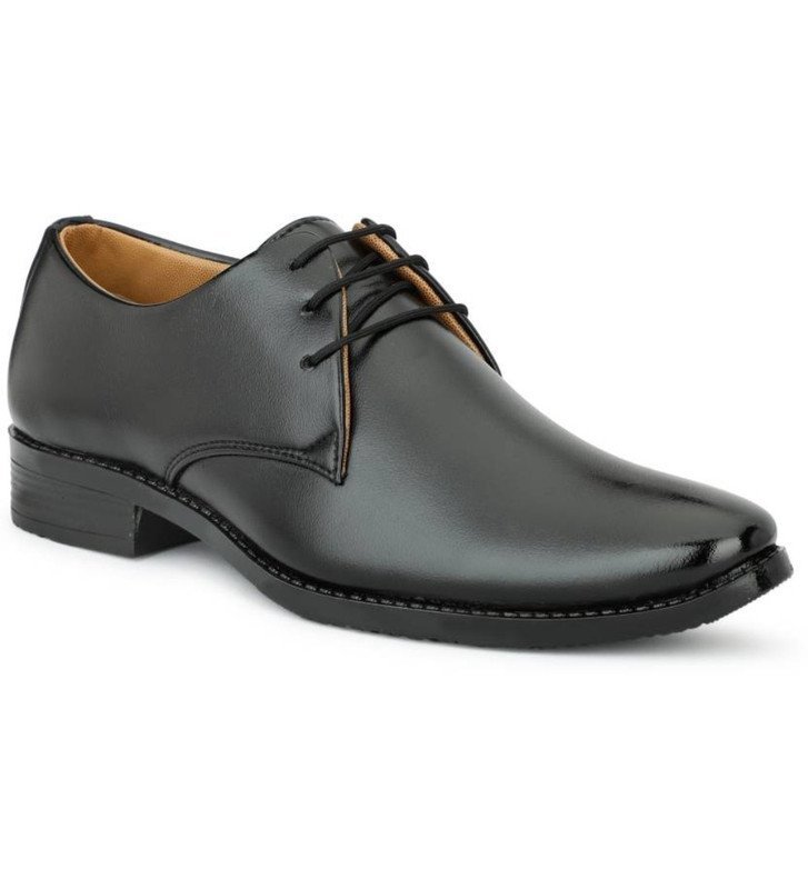 Men’s Faux Leather Formal Shoes, ? Color: Black, ? Material: Faux Leather, ? : 6, ? Closure Type: Lace-Up, ? Heel Type: Flat, ? Type: Formal Shoes, ? Disclaimer: The color of actual product may vary slightly from the images provided due to photographic lighting conditions and difference in screen resolutions.