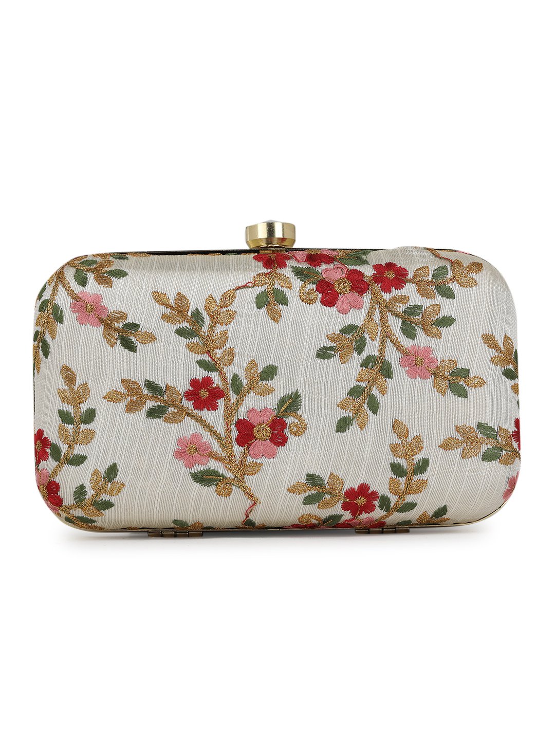 Off White Embroidered Box Clutch For Girls and womens